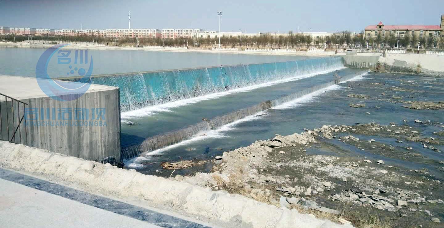 廣東江門 130m*3m 安裝一年以后的 液壓壩 堅(jiān)固可靠,瀑布美觀