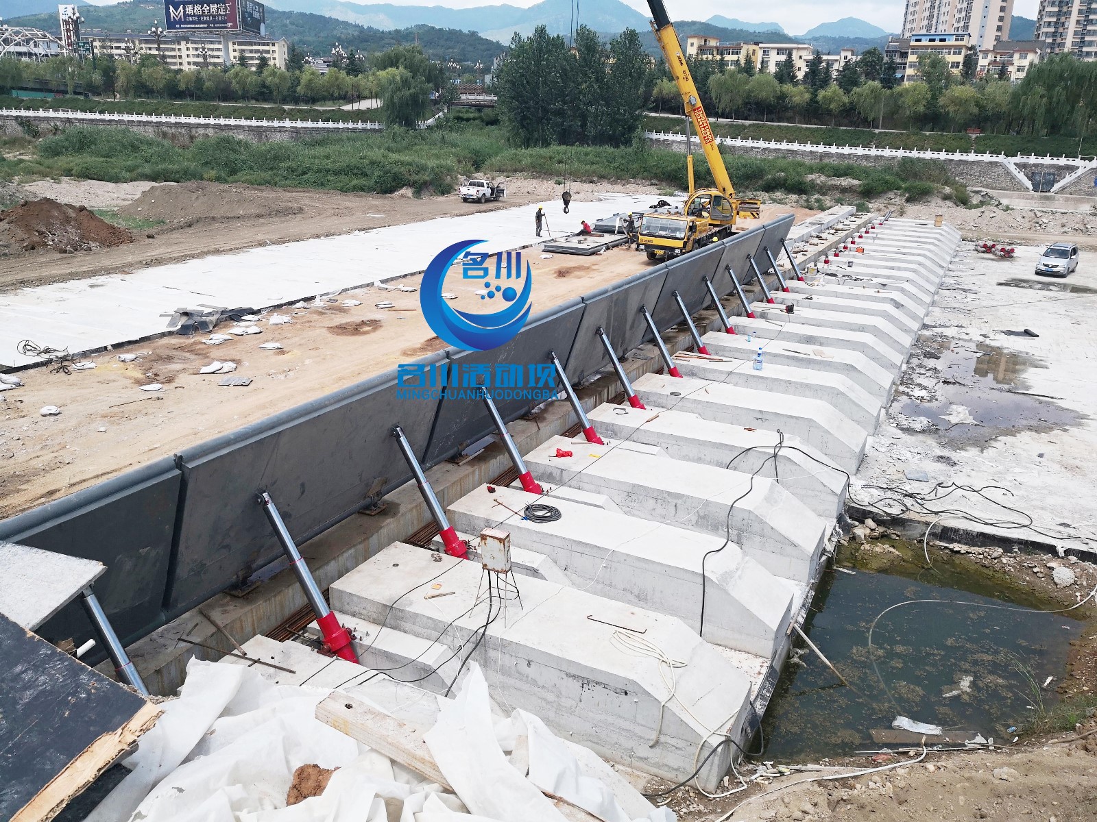 陜西130*2.8米 液壓壩施工現(xiàn)場,用工匠精神 打造精品工程